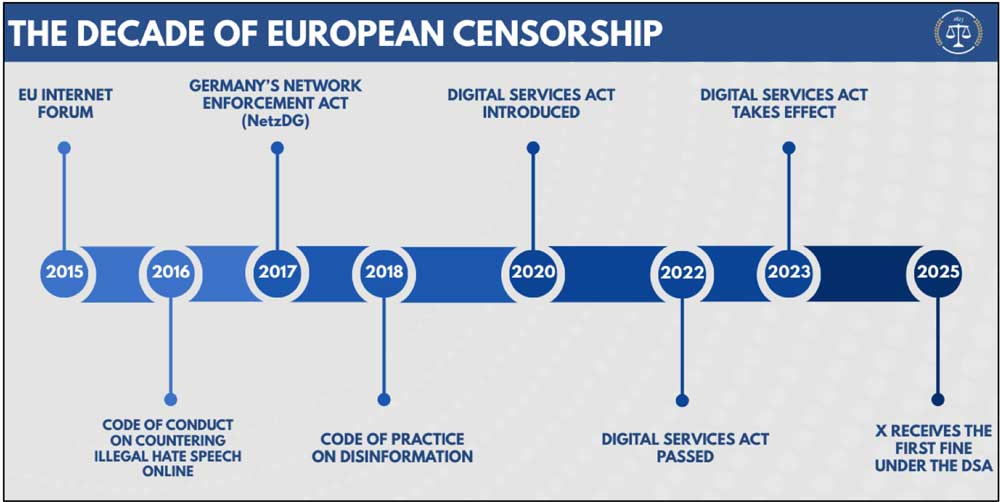 Zo zou de Europese Commissie grote sociale mediaplatforms onder druk hebben gezet om informatie en politieke discussies over enkele van de belangrijkste beleidsdebatten in de recente geschiedenis, waaronder de COVID-19-pandemie, massamigratie en transgenderkwesties te onderdrukken. Dit gebeurde onder het mom van het bestrijden van ‘haatzaaiende taal en desinformatie’.
