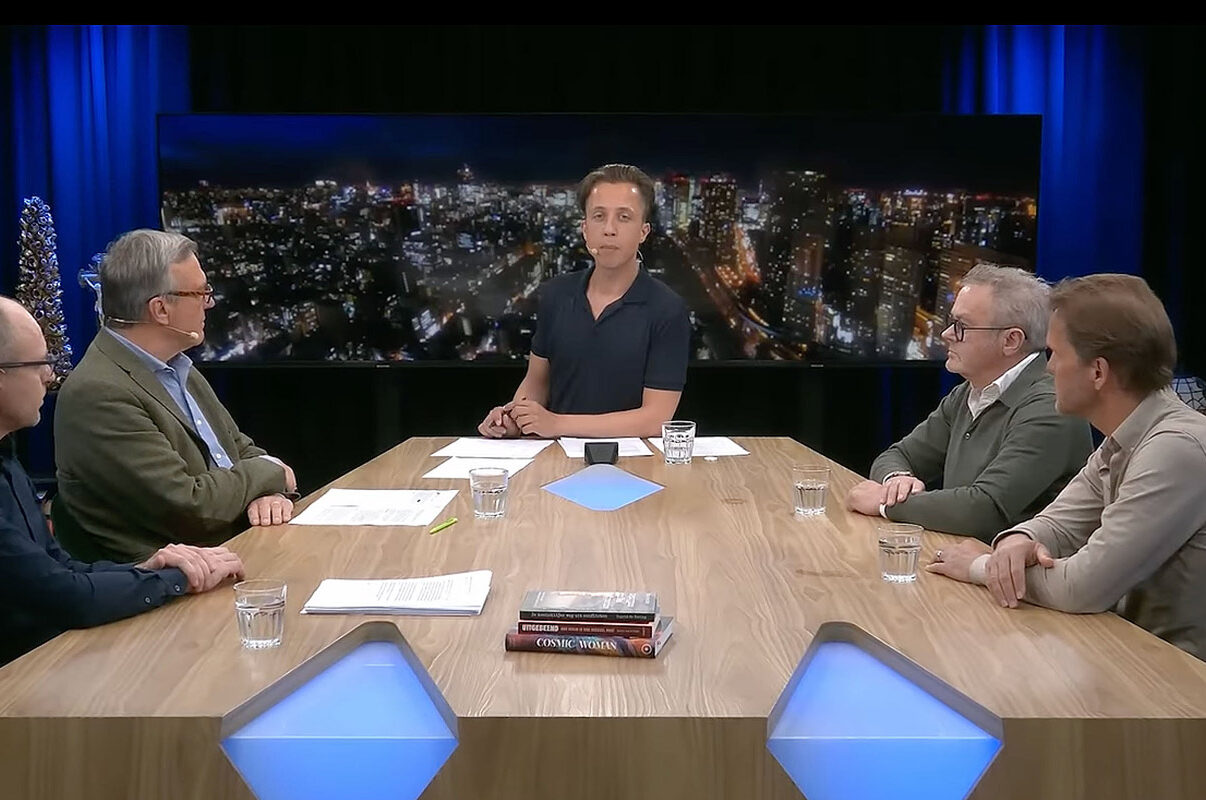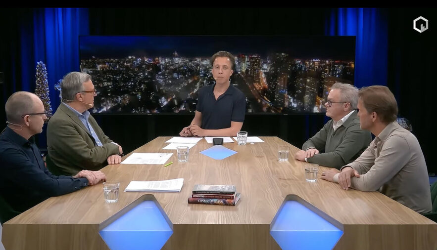 Foto: videofragment recente uitzending BLCKBX. V.l.n.r.: Daniel Pardoen, Jan van Aken, Erwin Taams, George van Houts en Huibrecht Boluijt.