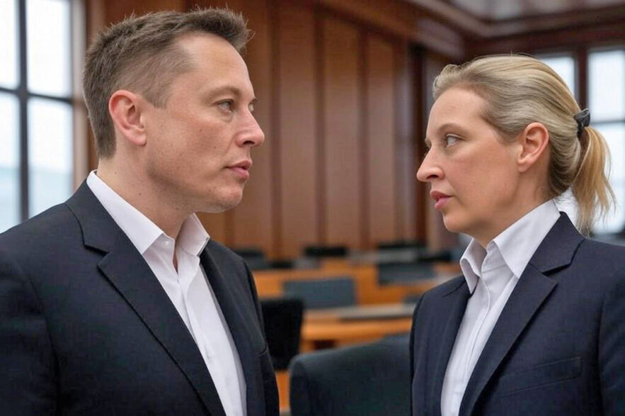 Afbeelding Elon Musk en Alice Wiedel (via GROK gegenereerd)