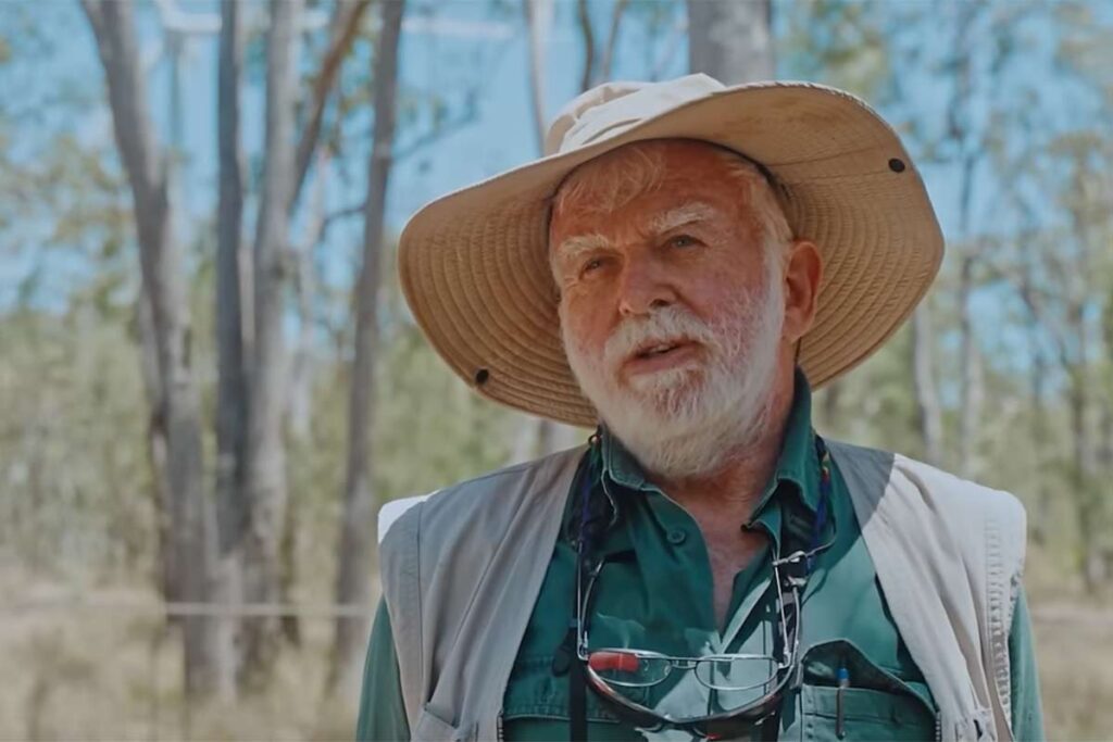 Dr Roger Martin, Wild Life bioloog, wijst op de schade aan het wild life, waaronder de zeldzame Australische icoon: de koala. (videofragment achter foto)