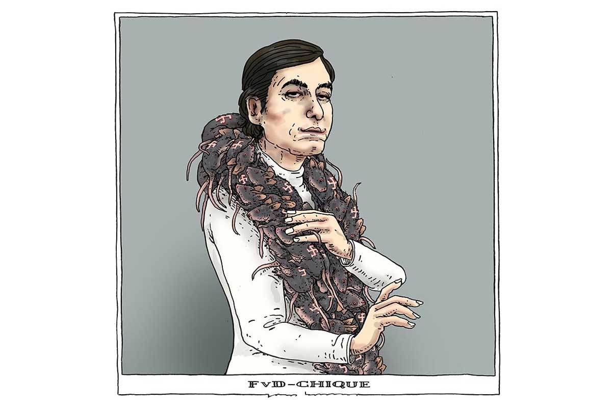 Columnist en oprichter van Café Weltschmerz Max von Kreyfelt op X: “Een vrouw, strak in het wit, met om haar schouders geen bont maar ratten. Geen subtiele metafoor, ratten. Het dier dat in het collectieve onderbewuste staat voor pest, vuil, besmetting, drager van dood. En daaronder de titel: Covid-chique. Alsof “de ander” niet alleen ongelijk had, maar ook zelf de ziekte ís.