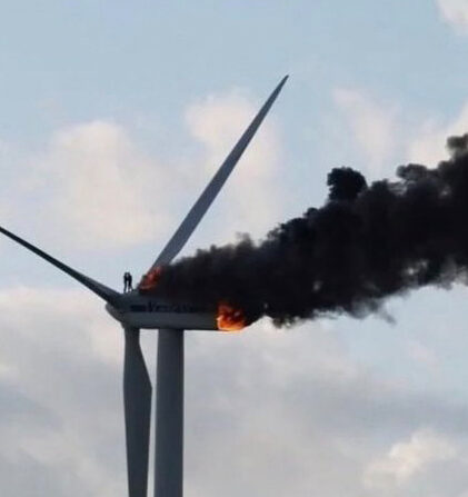 Een brand in een windturbine is niet zeldzaam. De tonnen wegende turbine kan dan afbreken en in een omliggend bos...